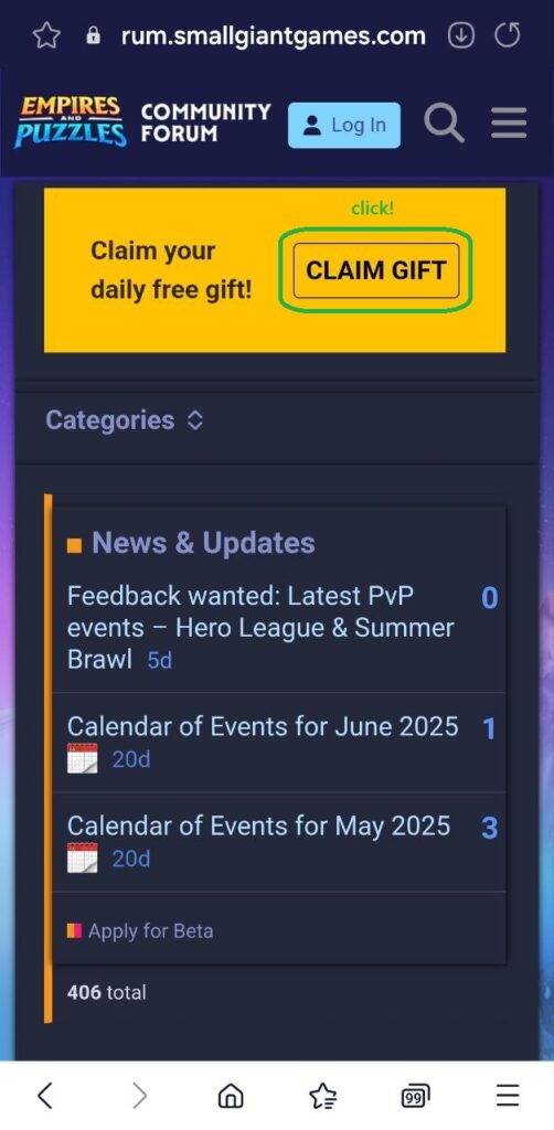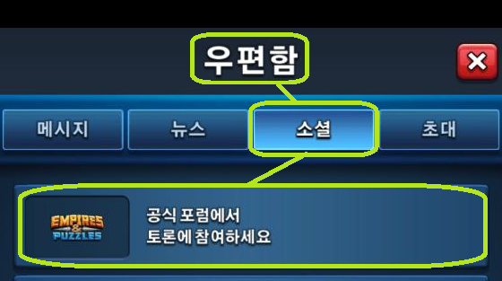 🕹️1. 엠파이어 & 퍼즐에 로그인 한 후 ‘우편함 → 소셜 → 공식포럼’을 클릭하여 홈페이지로 이동합니다.