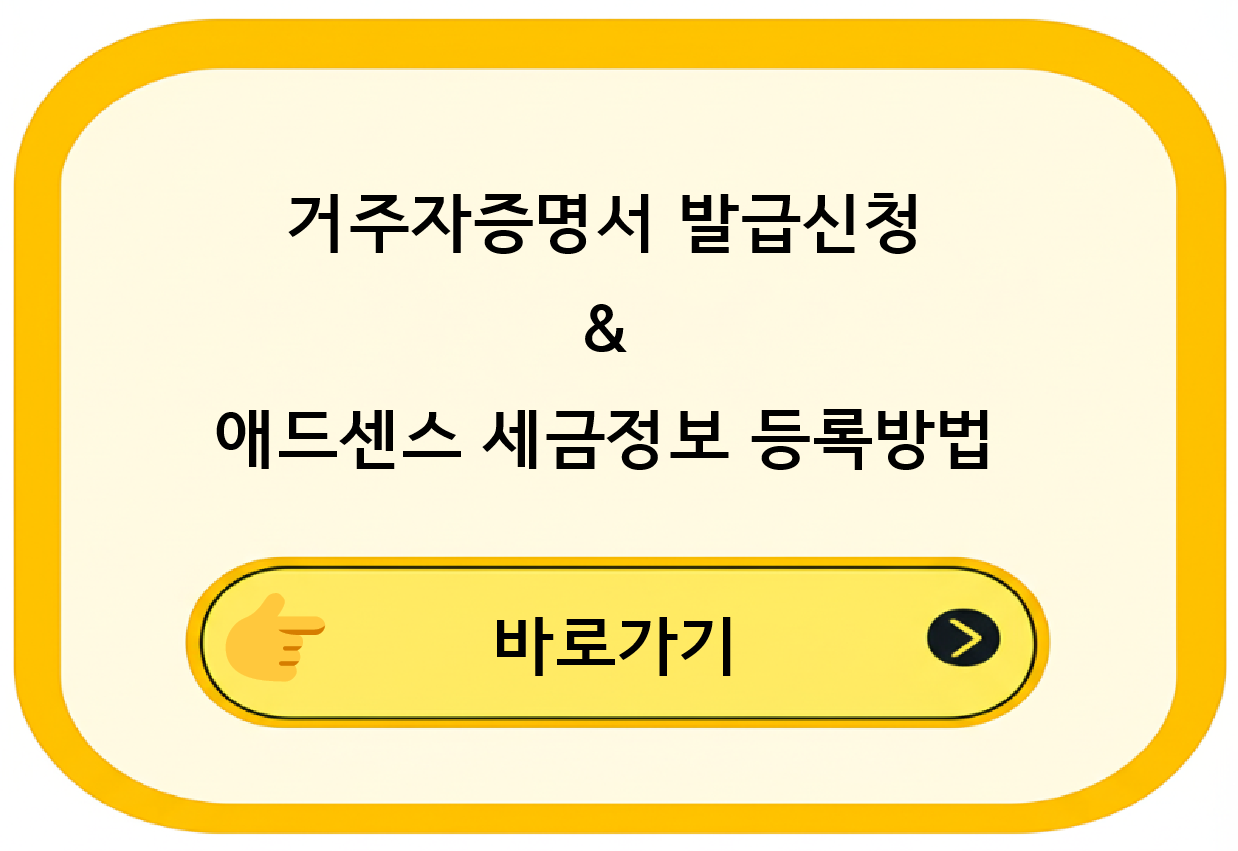 애드센스 승인 후 수익이 발생한 경우 추가적인 세금정보를 등록해야 수익금을 입금 받을 수 있습니다. 오늘은 그 절차에 대해서 간략히 정리해 보도록 하겠습니다. 거주자증명서 발급받기 1.먼저 홈택스에 접속 후 본인인증 과정을 거쳐 로그인을 합니다. 2. ‘전체메뉴 ▶ 등록 · 증명 · 신청 ▶ 거주자증명서 발급신청’ 순서대로 클릭합니다. 3. 거주자증명서 발급 신청서를 작성합니다. 이 때 ‘*표시’가 된 … 더 읽기