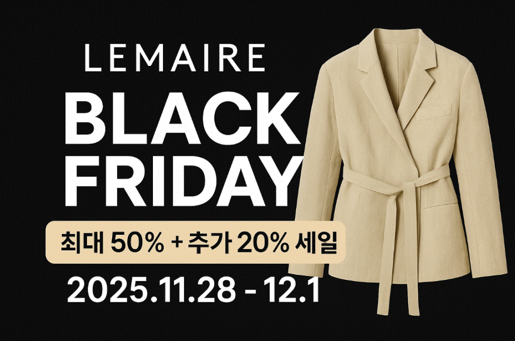 2025년에도 미니멀하고 고급스러운 감성의 대표 브랜드 르메르(LEMAIRE) 가 블랙프라이데이 세일에 참여합니다. 매년 세련된 실루엣과 자연스러운 색감으로 많은 패션 피플의 위시리스트에 오르는 브랜드답게, 올해도 주요 온라인 편집숍에서 대대적인 할인 이벤트를 진행할 것으로 예상됩니다.