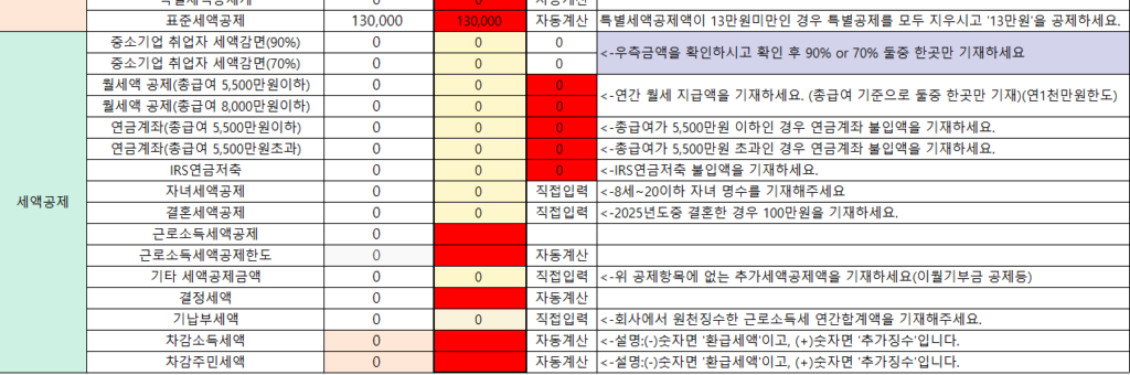 - 보험료, 의료비, 교육비 등 주요 공제 항목